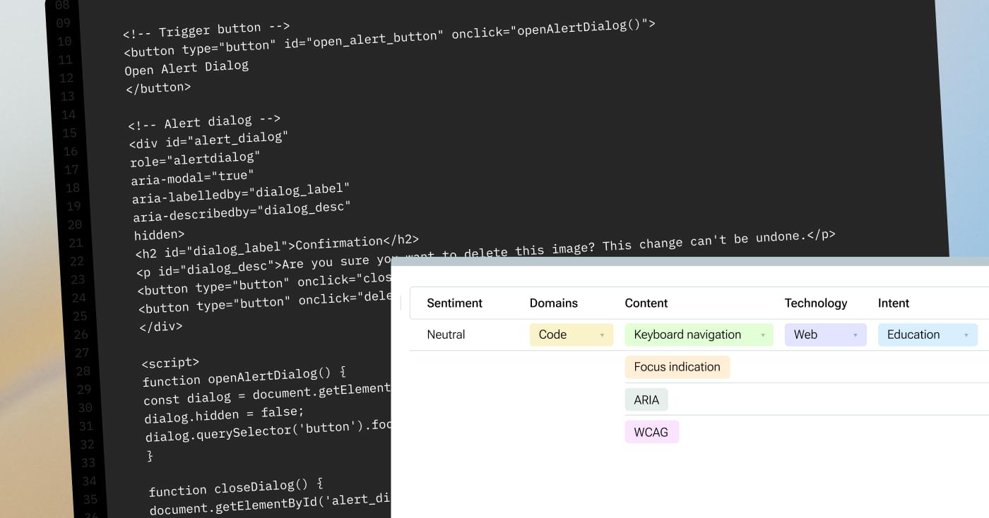 Here, the task was to structure requirements: distinguish between critical, desirable (nice-to-have), and optional elements, and define the correct implementation sequence. The value in these cases lies in outlining the solution's structure, as the order of actions and implementation logic is often critical for accessibility-related tasks. So, the Keymakr expert had to provide actionable recommendations for the model to learn from.